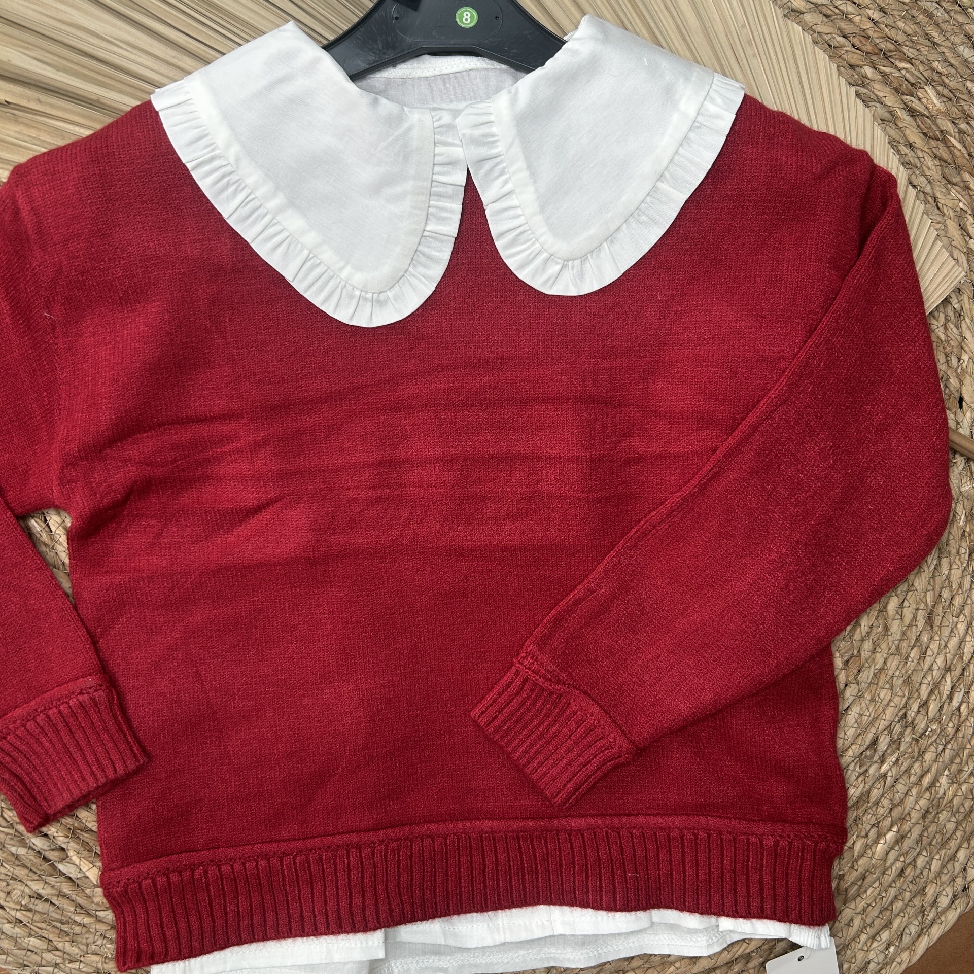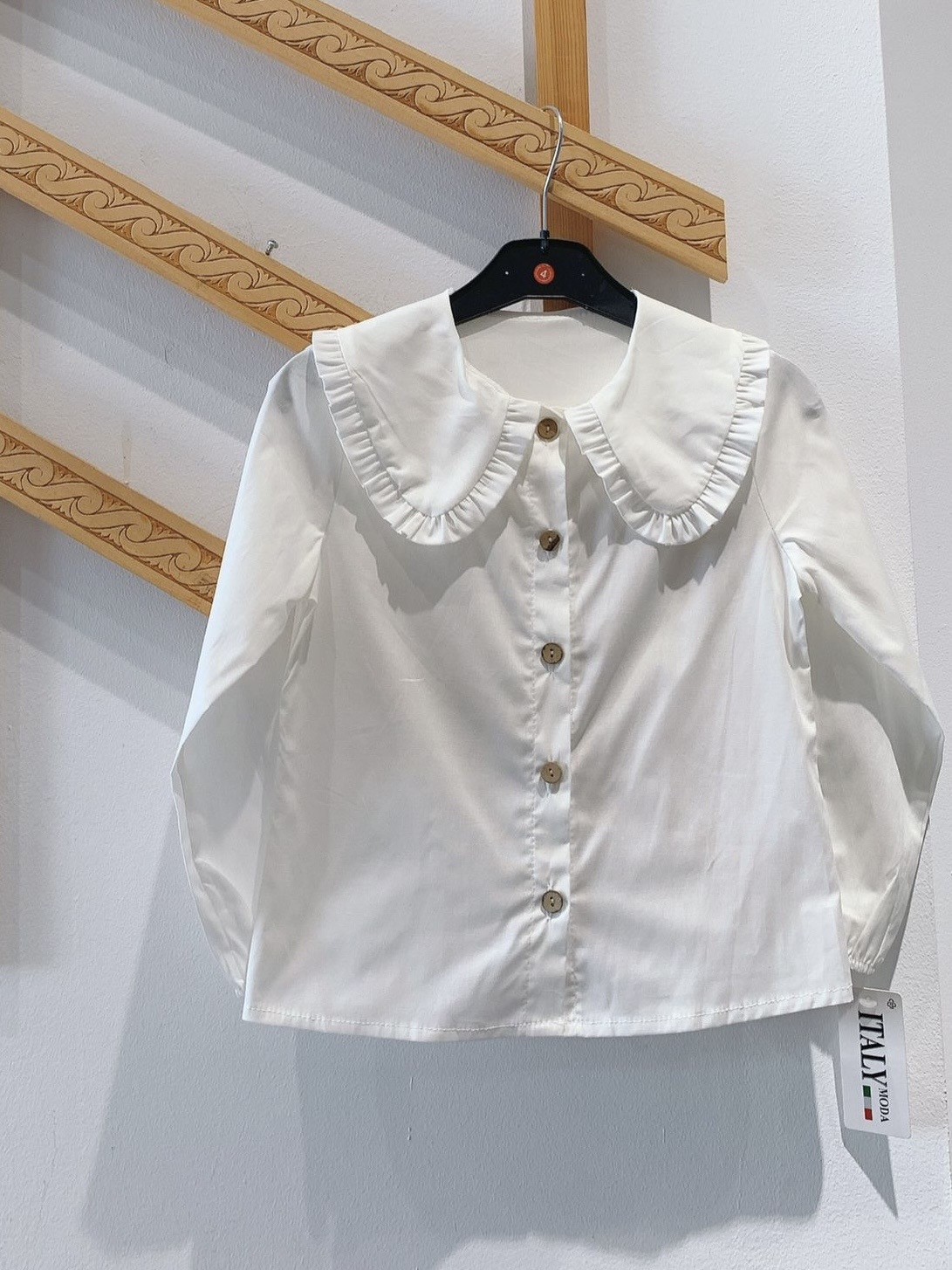 Camisa de manga larga en color blanco con cuello de babero y botones de madera.
