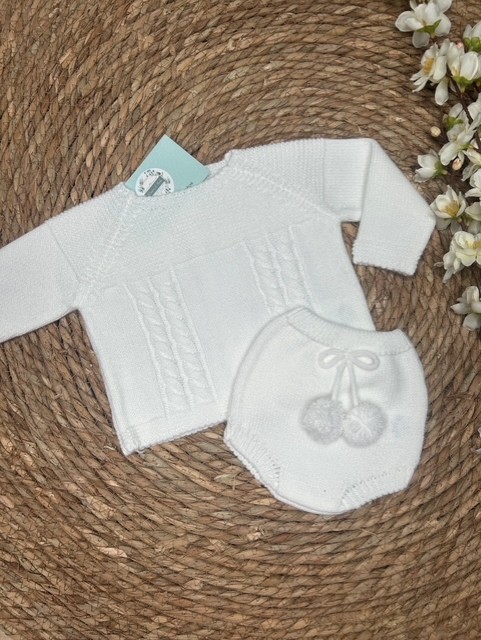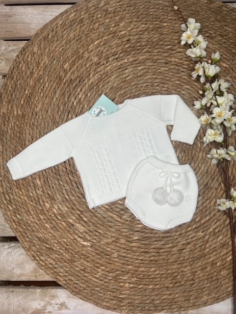Conjunto de lana en color blanco de dos piezas.