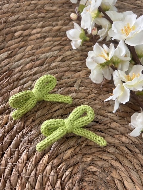 Lazo pequeño con cordón realizado a mano con pinza en color verde lima