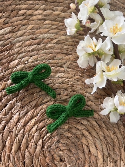 Lazo pequeño con cordón realizado a mano con pinza en color verde botella
