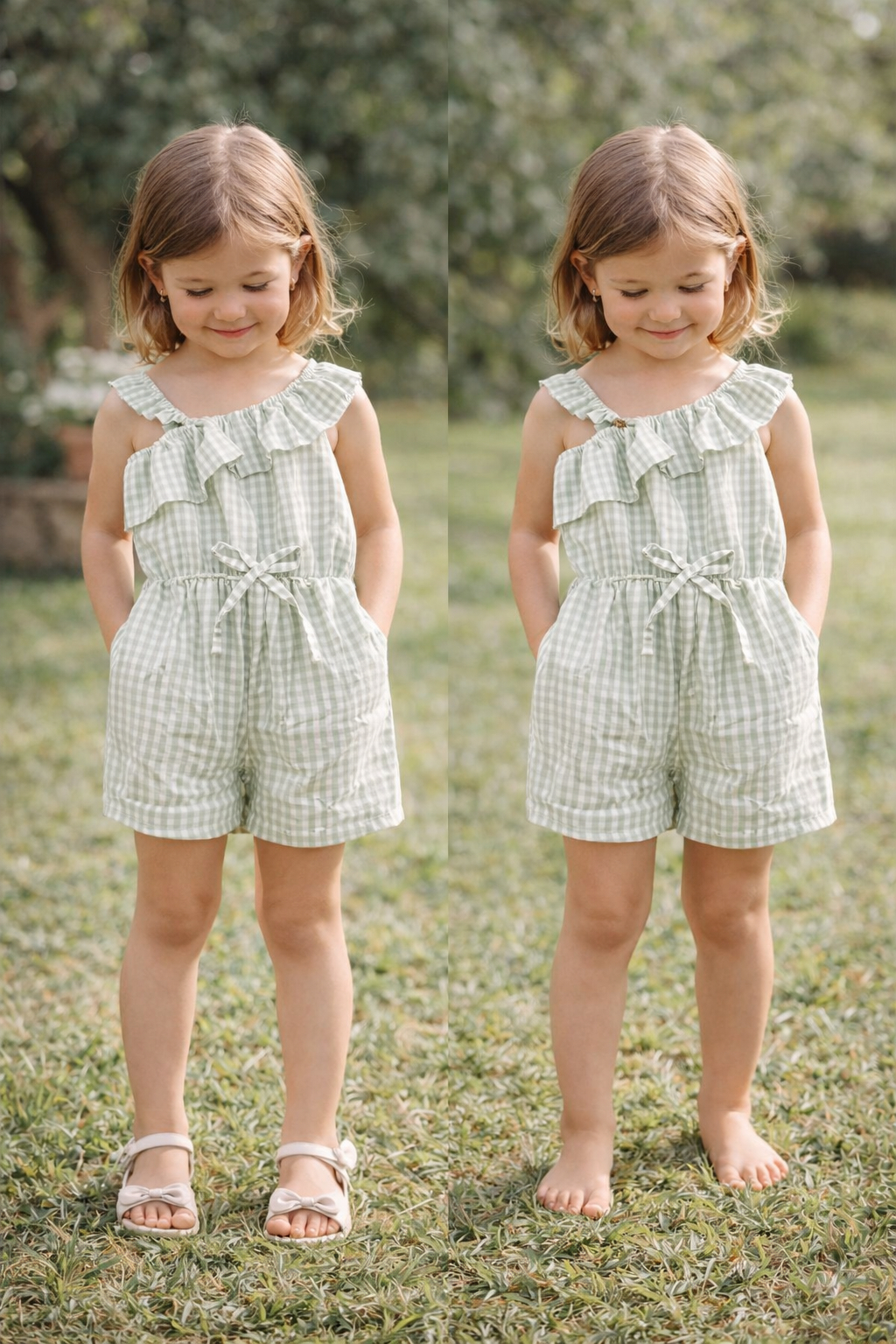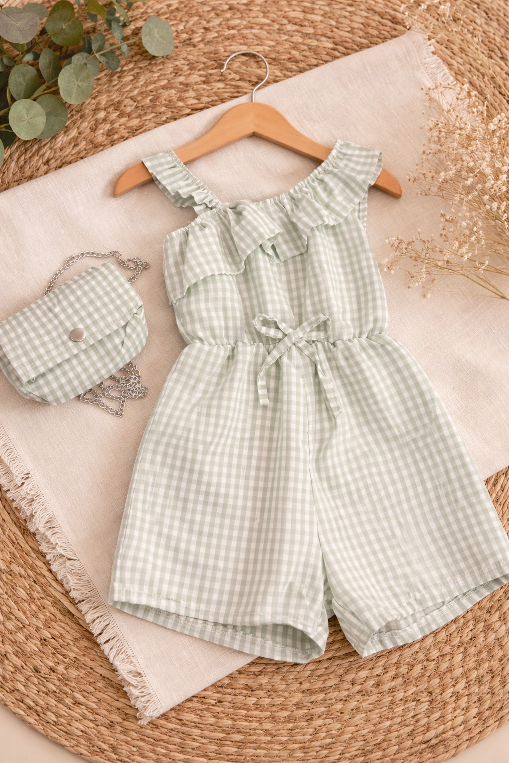 Este mono en estampado vichy verde es la opción perfecta para los días de verano.