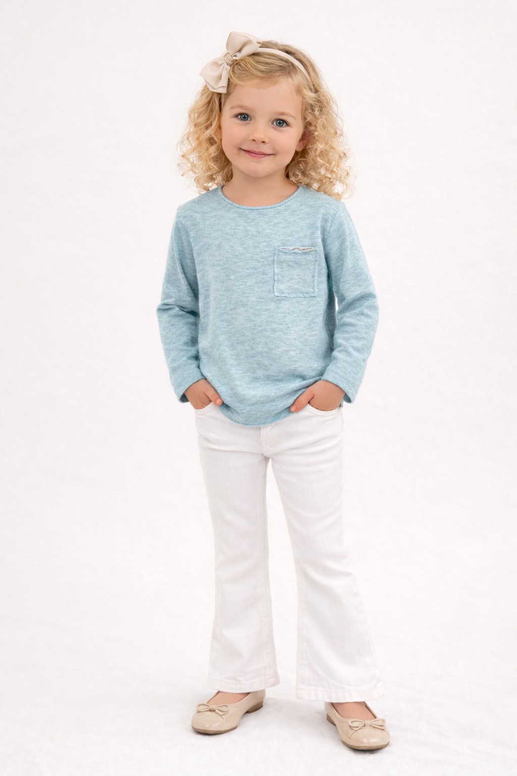 Pantalón en color blanco de campana básico con bolsillos delanteros y traseros.