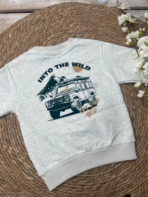 Sudadera de niño en color gris claro con dibujo delantero y trasero.